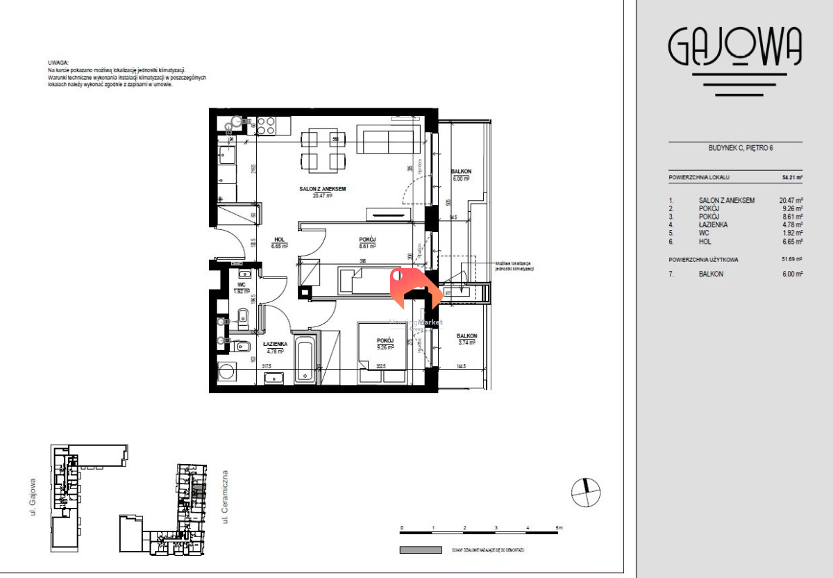 - Możliwa lokalizacja jednostki klimatyzacji (zgodnie z warunkami technicznymi inwestycji)
