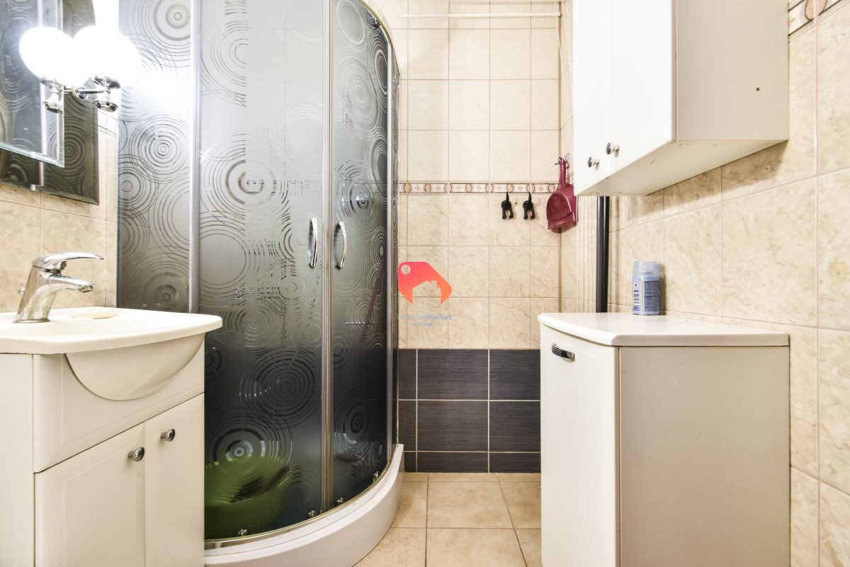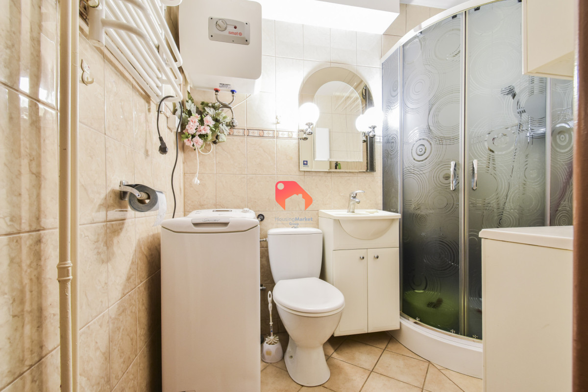 - Łazienka z WC - w płytkach, z kabiną prysznicową, pralką automatyczną i bojlerem elektrycznym
