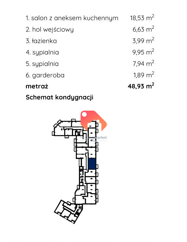 - dwie sypialnie: 9,95m2 oraz 7,94m2,