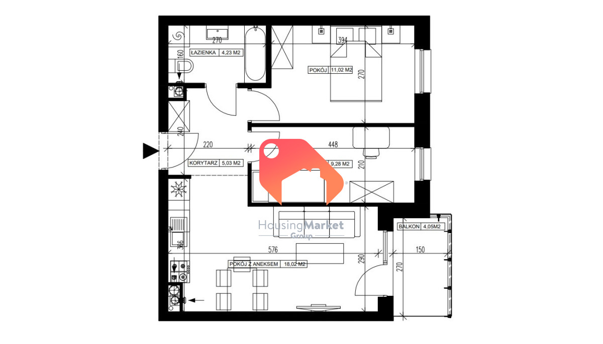 - pełne AGD w zabudowie: lodówka, zmywarka, piekarnik, płyta indukcyjna, okap