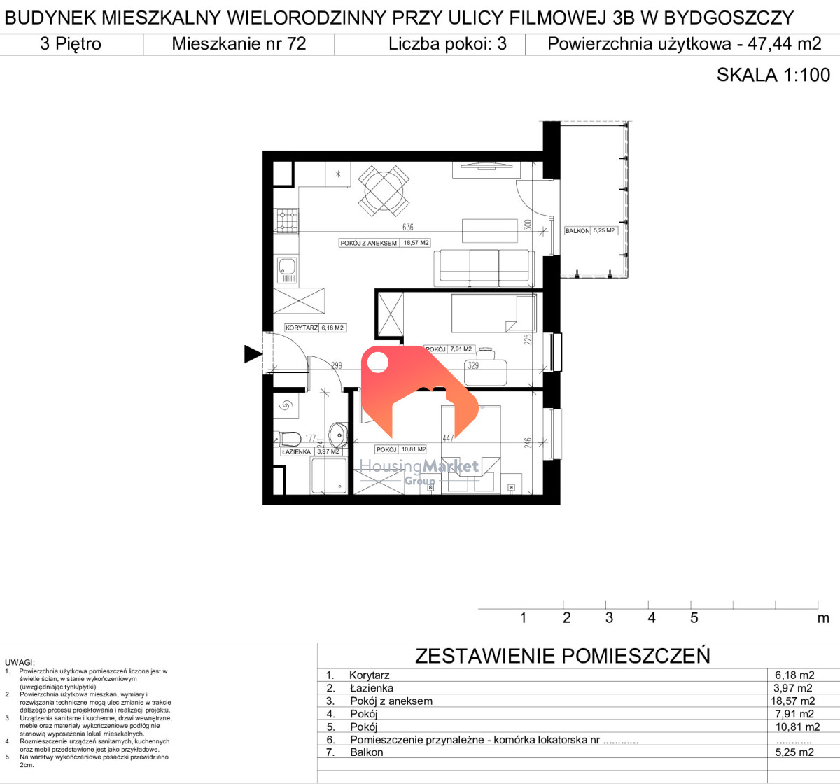 Zapraszam do zapoznania się z ofertą 3 pokojowego mieszkania o powierzchni 47,44 m2, położonego na nowoczesnym, ogrodzonym i monitorowanym osiedlu - na bydgoskich Kapuściskach.