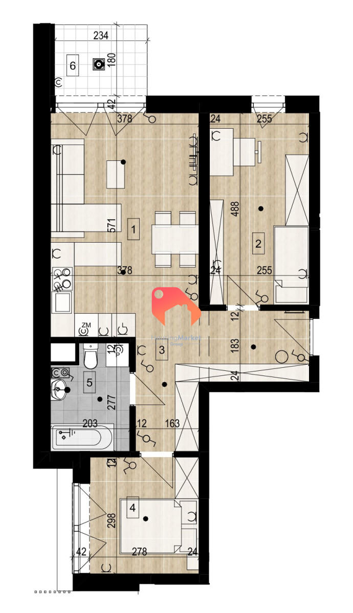 Projekt zakłada budowę 32 mieszkań w metrażach od 28m2 do 56,3m2 zlokalizowanych na czterech piętrach budynku.