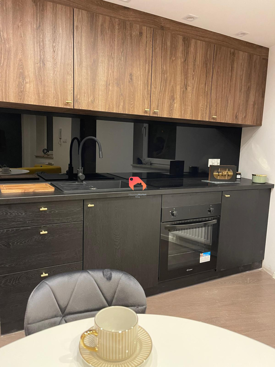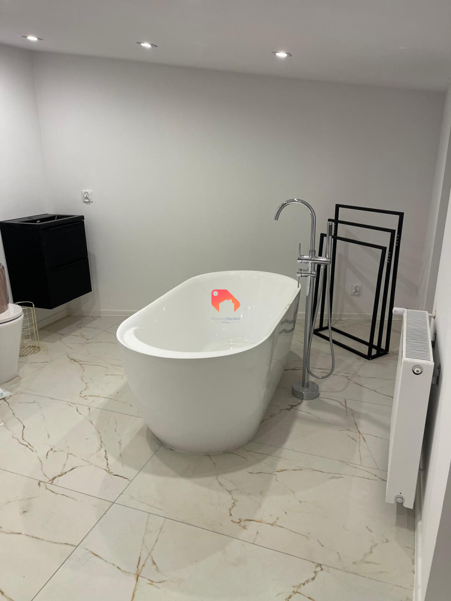 - wyposażona kuchnia (płyta, piekarnik, okap, zlewozmywak, lodówka) i łazienka (kabina prysznicowa, szafka podumywalkowa, lustro, pralka),