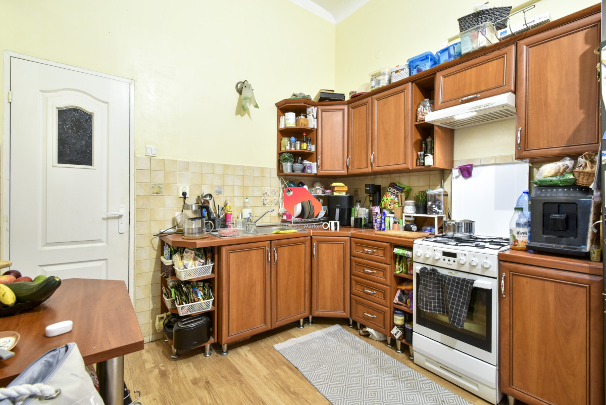 Układ: 3 pokoje (jeden przejściowy), kuchnia przejściowa.