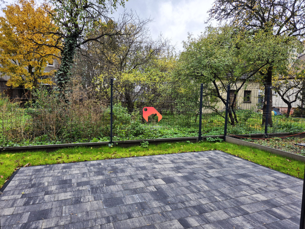 - ogródek zagospodarowany trawą i oddzielony od kolejnego segmentu siatką,