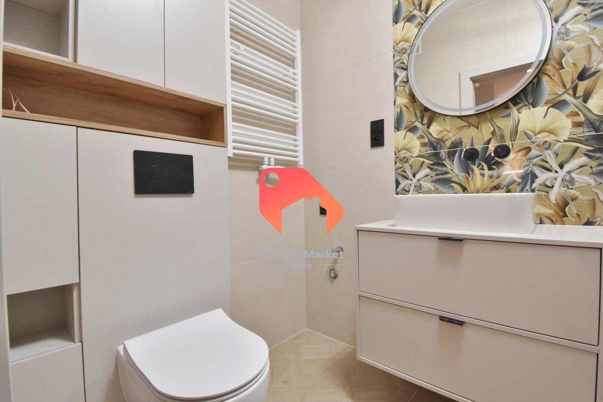 Mieszkanie zostało wykończone pod klucz, z użyciem materiałów wysokiej klasy: