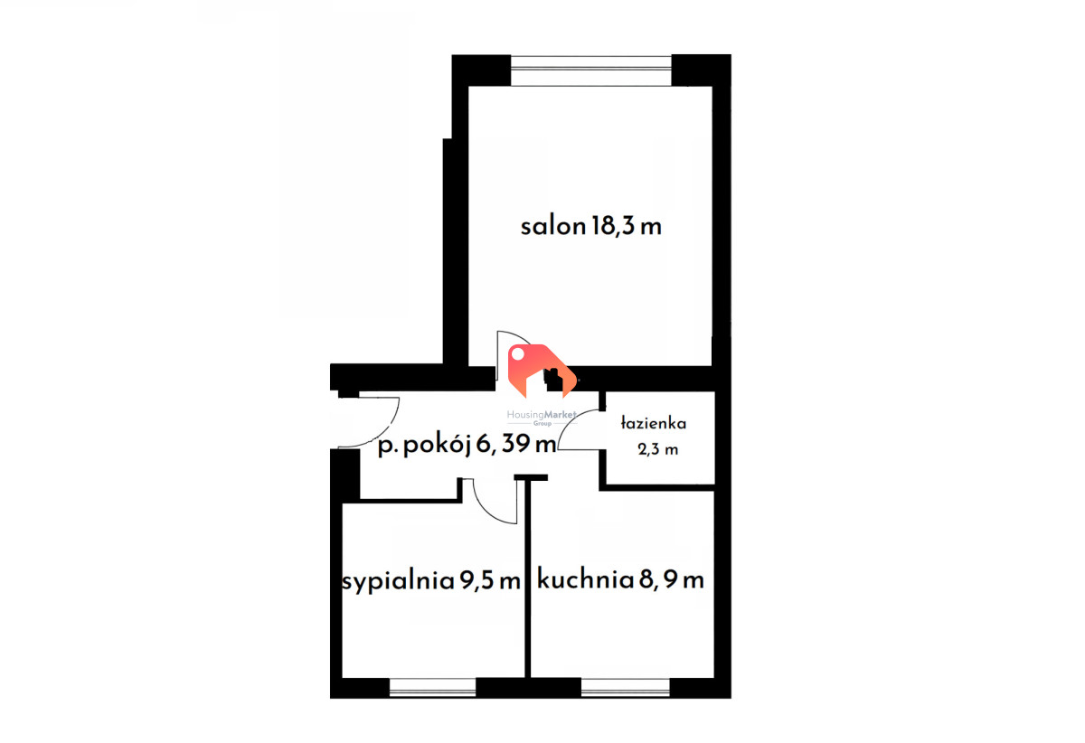 Mieszkanie ma bardzo funkcjonalny rozkład - przedpokój prowadzi do wszystkich pomieszczeń: