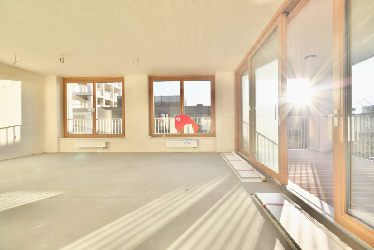 W penthouse’ach zaproponowano ogromną przestrzeń strefy dziennej oraz duży, wygodny masterbedroom z łazienką, garderobą i toaletką.