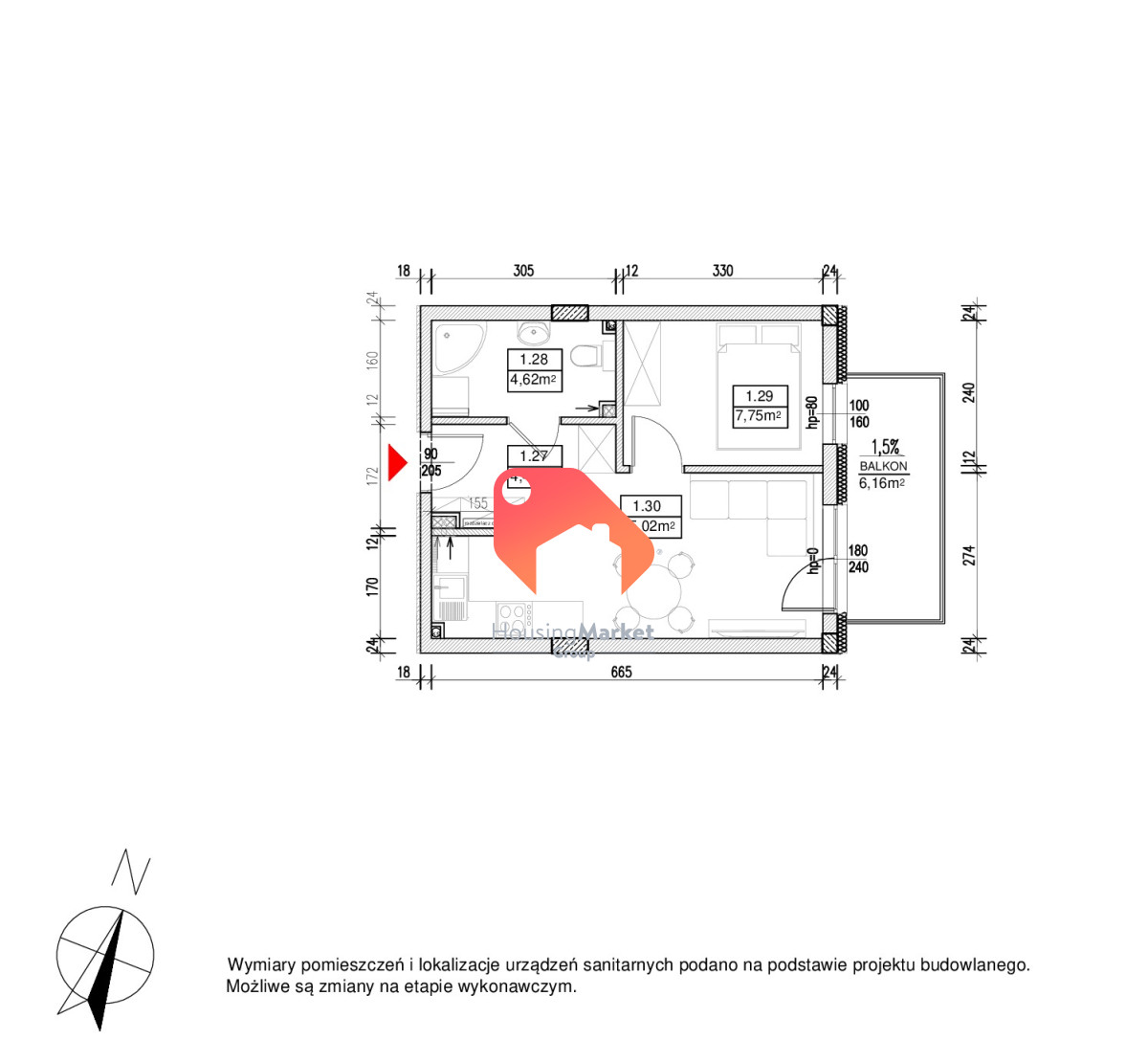 - łazienka 4,62m2.