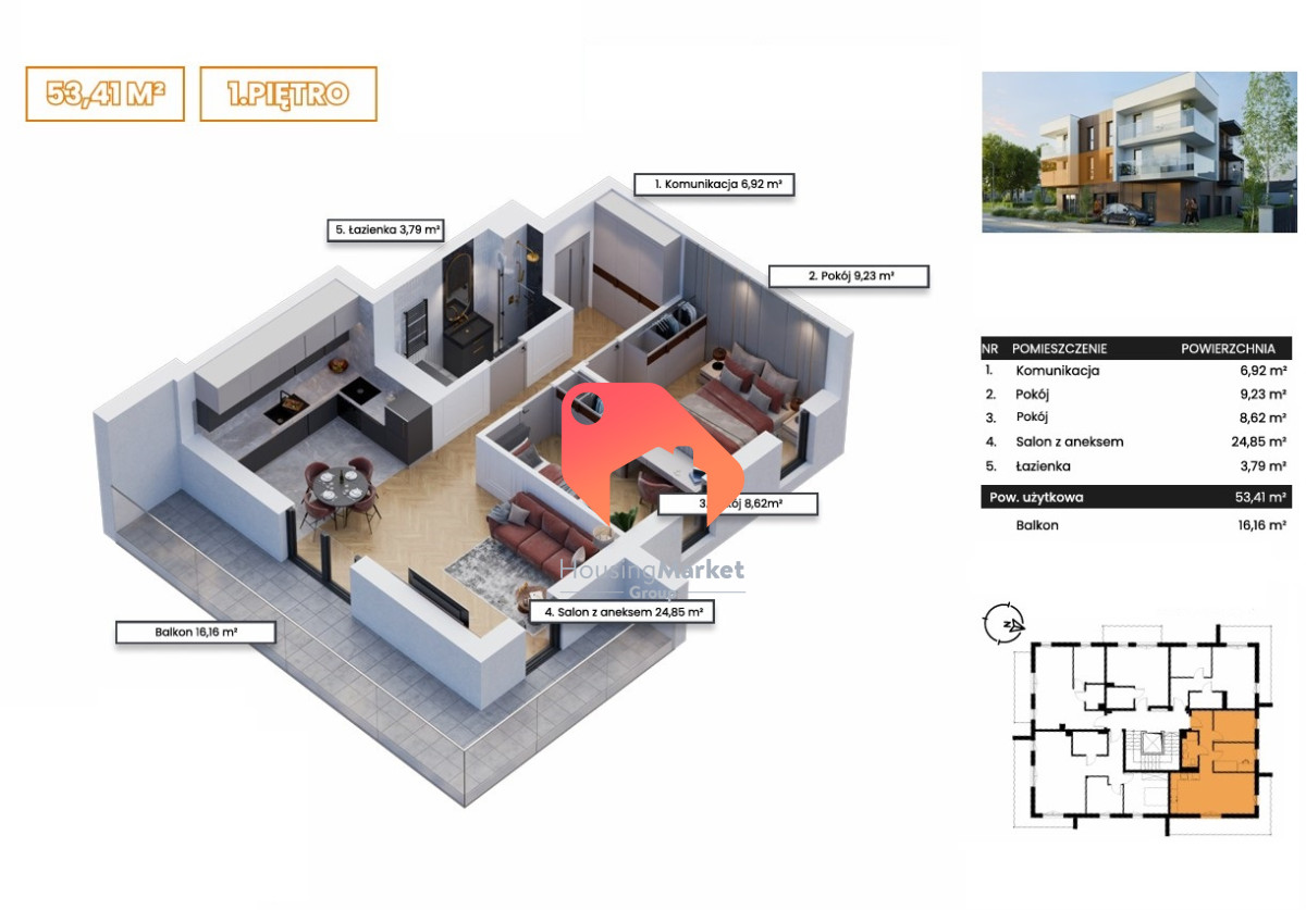 - Balkon o powierzchni 16,16 m² - idealne miejsce do relaksu i wypoczynku na świeżym powietrzu.
