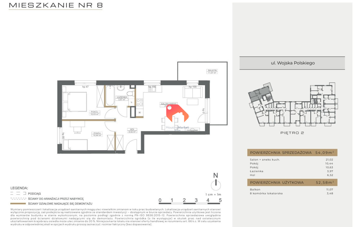 Powierzchnia całkowita: 52,58 m²