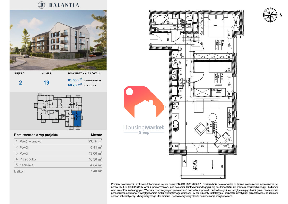 - Powierzchnia:60,76 m2
