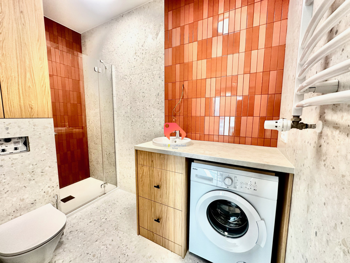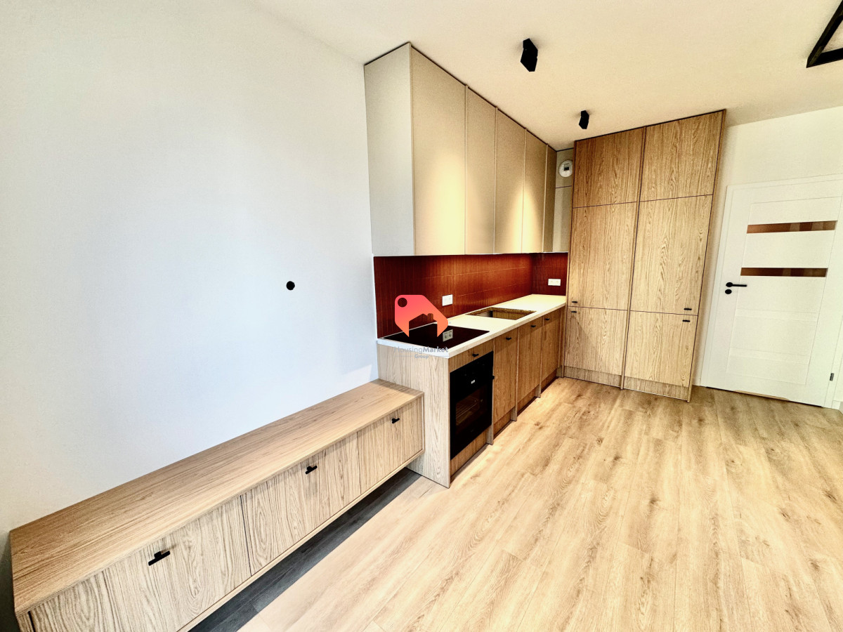 Apartament o powierzchni ok. 27 m2 składa się z eleganckiego i przytulnego salonu z aneksem kuchennym. Jest w nim komfortowa sofa z funkcją spania. Kuchnia jest kompletnie wyposażona w sprzęt AGD (zmywarka, lodówka, płyta, okap, piekarnik). A przestronna stylowa łazienka zapewni duży komfort z użytkowania tego niewielkiego apartamentu. Ogromnym atutem tej nieruchomości jest wydzielona strefa sypialniana. Warto zaznaczyć, że w apartamencie mamy do dyspozycji bardzo dużą ilość szaf, które pomieszczą wszelkie niezbędne rzeczy.